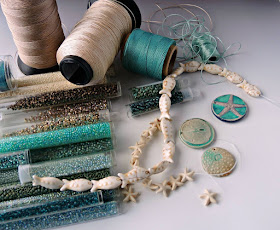 Falling Leaves thing (leaves, leaves....), and it turns out if you use turquoise and tan you get a very summery version of the bracelet, especially with a starfish bead attached!